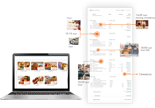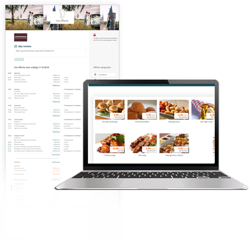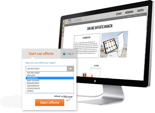 Maak razendsnel online offertes of laat uw klanten zelf online een offerte maken. Van zaalkeuze, diner, hapjes tot dieetwens.