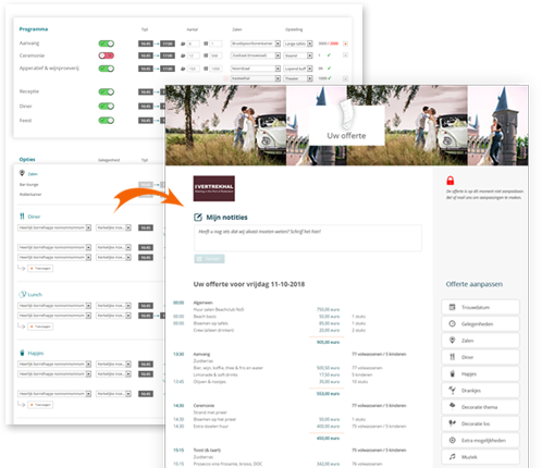 Uw bruidparen, of klanten van elk ander event, krijgen zelf online toegang tot de offerte in uw (white label) omgeving.
