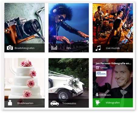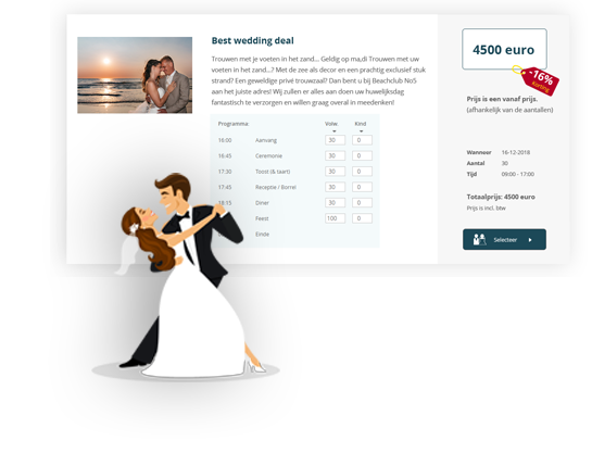 Geef uw klanten de mogelijkheid om allesvia De Offerteplanner te organiseren. Vanverlanglijstje tot trouwsite.